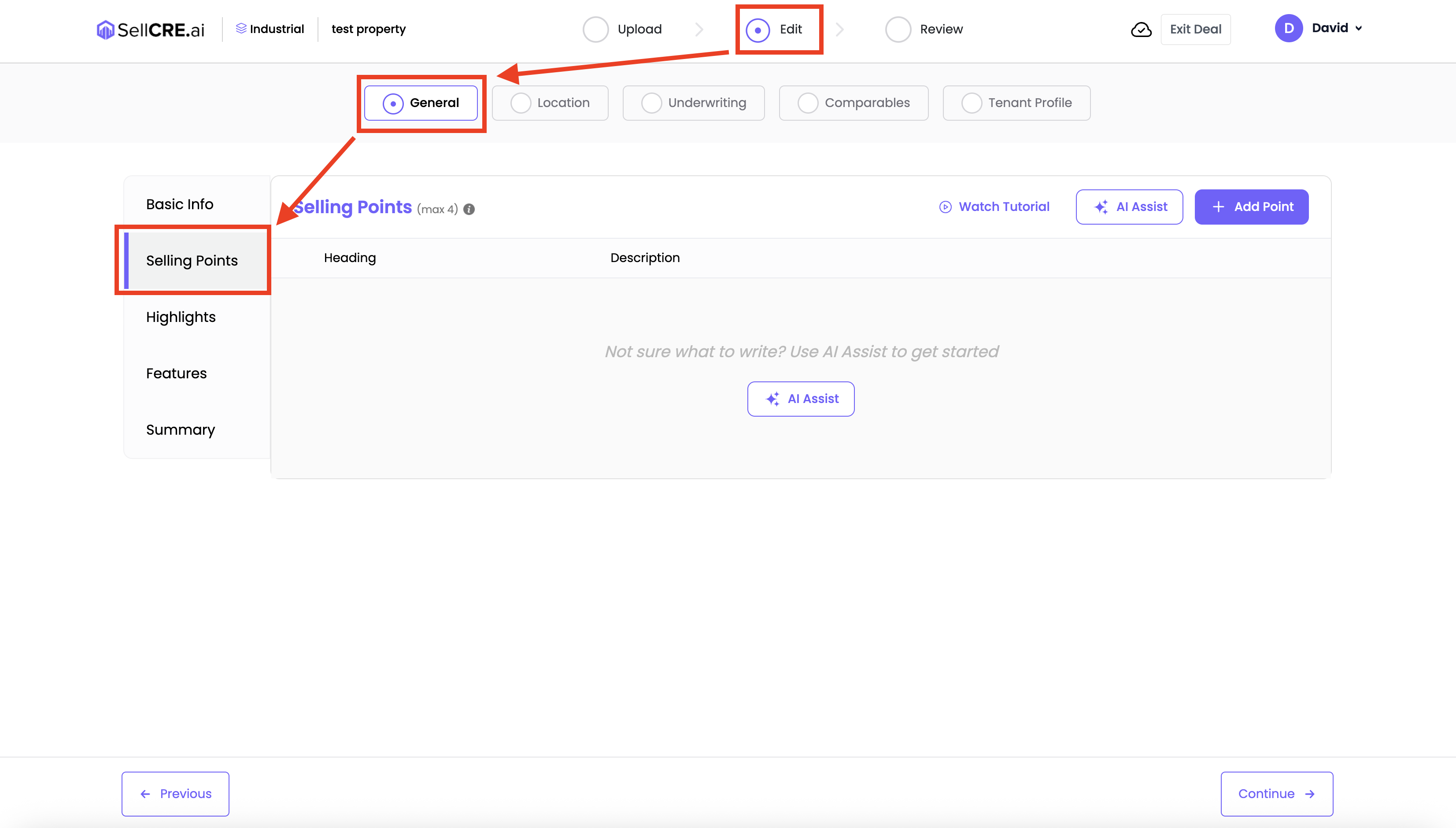 Enter up to 4 quick reasons why the property stands out, and AI Assist would generate 4 strong selling points with heading and description based on your input.