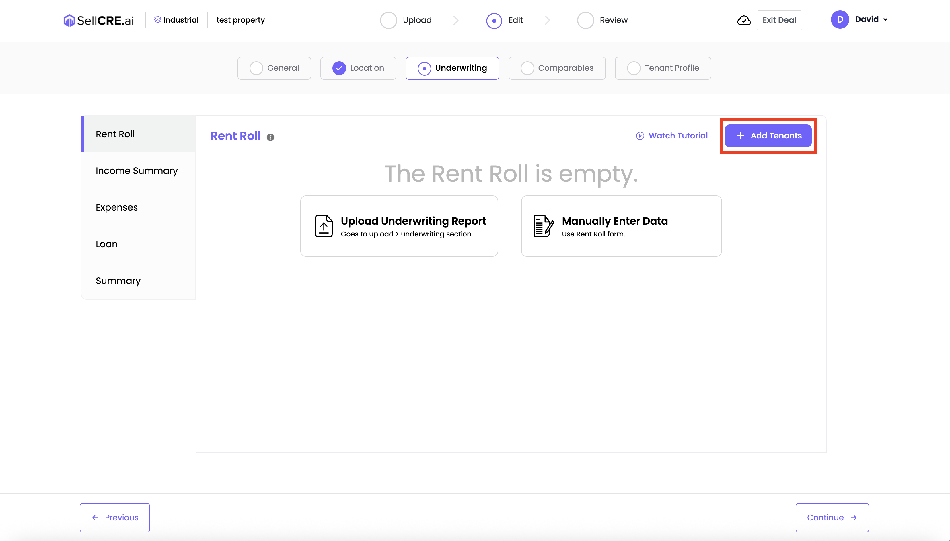 If you uploaded an underwriting report, tenant data from the sheet will appear here automatically