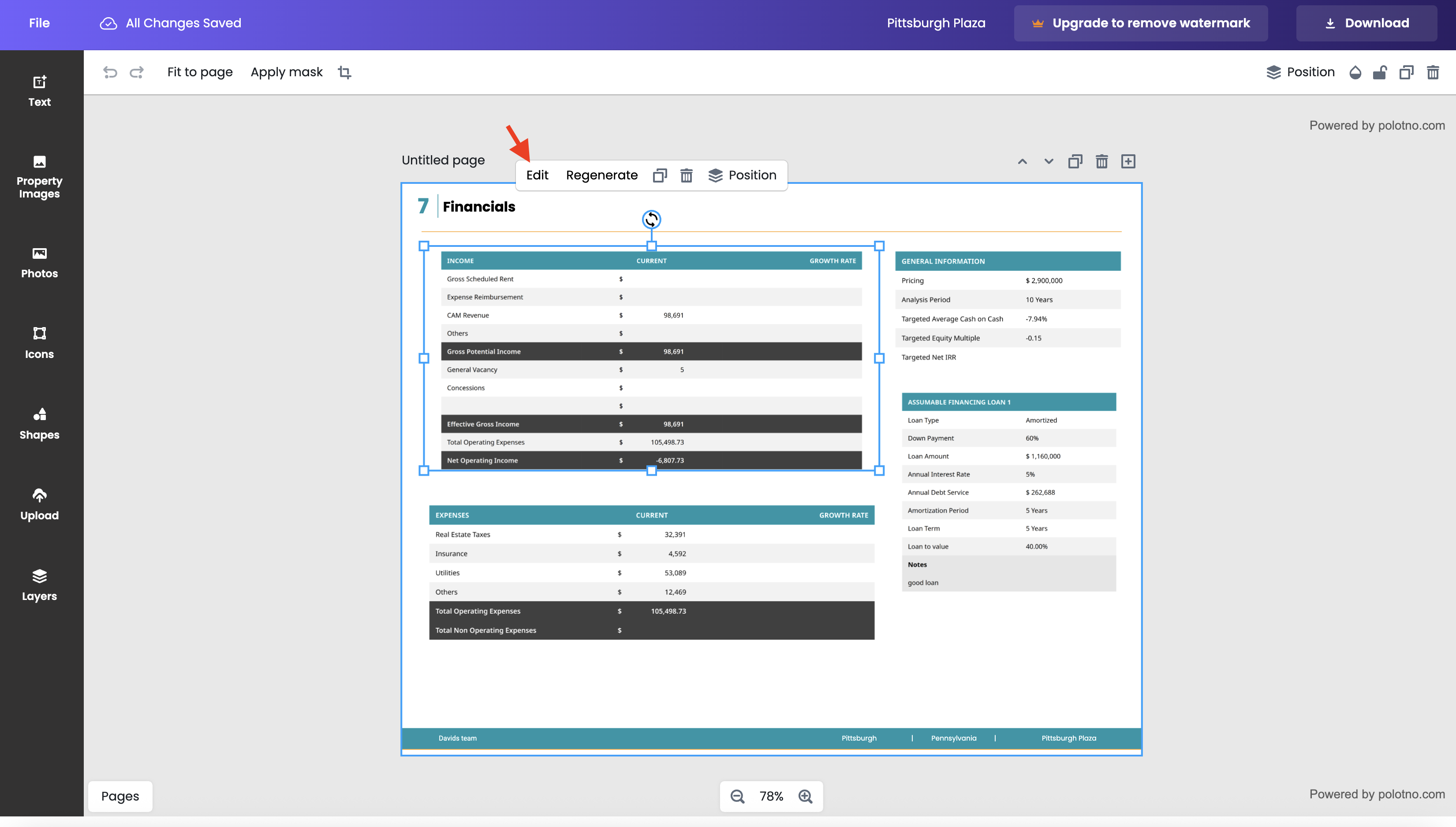 To navigate to the Visual Editor, go to your property details page and click the Edit button on any generated marketing material — this will take you directly into the Visual Editor.