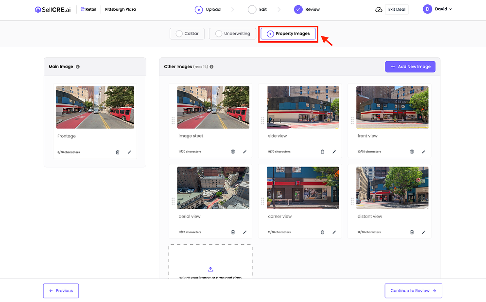 Click the “Property Images” tab in the left sidebar.